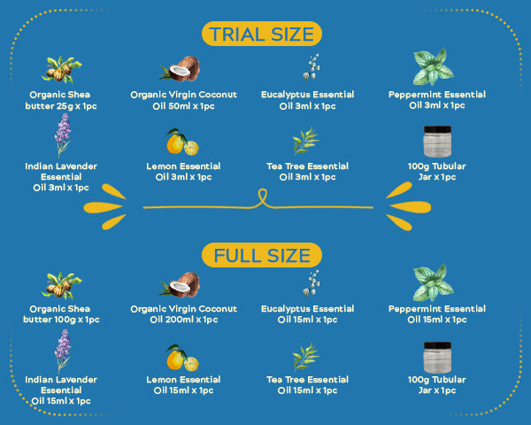 Soothe your respiratory system and ease congestion with our DIY Organic Vapor Rub, crafted to provide natural relief from colds and respiratory discomfort. This blend combines Organic Shea Butter, Virgin Coconut Oil, and a selection of essential oils, including Eucalyptus, Peppermint, Indian Lavender, Lemon, and Tea Tree. Organic Shea Butter and Virgin Coconut Oil form a nourishing base that deeply moisturizes and conditions the skin while allowing the essential oils to work their magic. Eucalyptus and Peppermint Essential Oils offer a cooling sensation and help open nasal passages, while Indian Lavender Essential Oil promotes relaxation and alleviates stress. Lemon Essential Oil adds a fresh, uplifting aroma, and Tea Tree Essential Oil provides natural antibacterial properties. Apply this rub to your chest and throat for a comforting, organic solution to respiratory discomfort.
